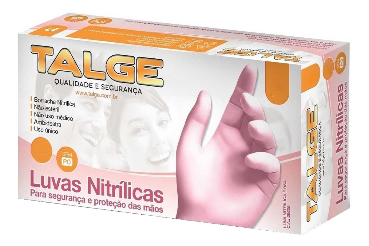 Luvas Nitrílica Rosa - Tamanho M -Talge - 100 unidades